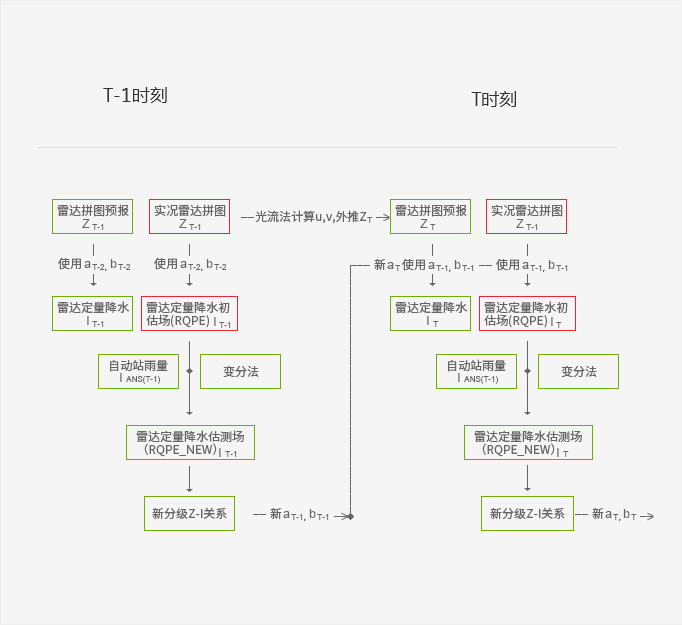 针对雷达定量降水预报,改进现有气候统计算法确定的Z-I关系,改为动态获取,即每6分钟动态获取Z-I关系,描述不同时刻降水性质。