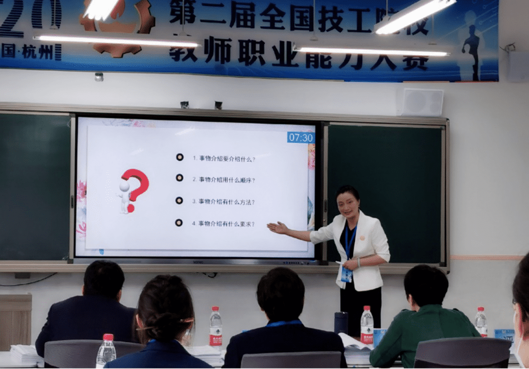 本次大赛主要进行教学设计和说课答辩的比拼,全面检验技工院校教师职业素质、理论知识水平、实践操作以及运用先进教学方法的能力。在这场群英荟萃的教师能力竞赛中,我院两位参赛教师从广东省选拔赛到全国决赛,一路过关斩将。作为一堂语文课,蔡芝亮老师结合学生专业背景,将课程教学内容和学校文化活动相结合,以非遗刺绣作品为载体,引导服装专业学生探究如何进行事物介绍。教学设计构思巧妙,教学方法灵活多样,教学说课打动人心,获得了评委的一致好评。作为一堂专业课,张樱楸老师依托学院学生建设的扶贫电商平台--“乡贸荟”农村电商平台,在精准扶贫的时代背景下,指导学生进行农产品直播带货的脚本撰写,并带领学生直播带货一小时,创收7万元,真正实现了学习任务与真实工作的无缝对接。最终,我院两位参赛教师凭借出色的教学设计和精彩的说课答辩获得喜人成绩。其中,通用能力建设中心蔡芝亮老师荣获公共类一等奖、商贸服务产业系张樱楸老师荣获财经商贸类一等奖。这充分展现了我院教师的教育教学水平,更是对我院深入推进一体化教学改革、强抓有效课堂的极大肯定。